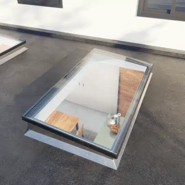 Walk-on rooflights are heavy-duty glass skylights designed to be installed flush with flooring or decking, creating a window you can literally walk on. TGS Walk-On Rooflights are great for roof terraces, balconies, or above basements, basically anywhere you want to drive light into the space below while still using the surface above.